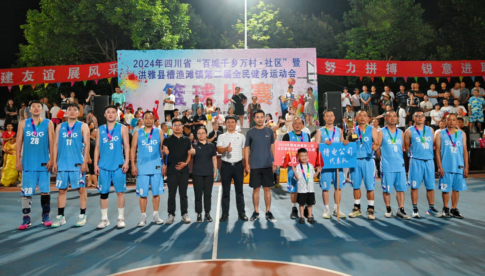 8月14日,2024年洪雅县槽渔滩镇第二届全民健身运动会篮球比赛决赛在镇文化广场举行,川投电力所属槽渔滩公司代表队与洪雅县兴盛社区代表队经过激烈角逐,最终以7分优势荣获冠军。