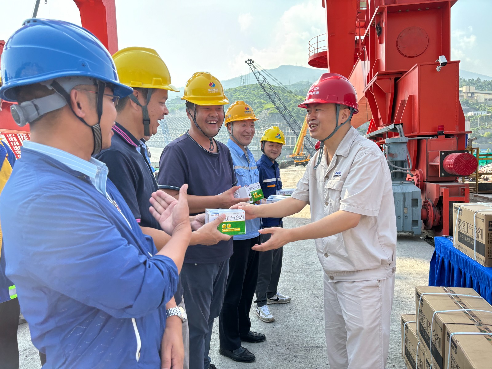 公司工会结合机组投产发电工作方案和劳动竞赛活动,精心策划并启动了系列温馨而务实的慰问活动,向奋战在工程一线的建设者们表达公司的关心关爱,为大家送去生活必需品、藿香正气液、西瓜、银耳汤等慰问物资。通过系列慰问活动,不仅为一线工友提供了实质性的帮助,更在情感上拉近了与大家的距离,增强了团队的凝聚力、向心力与战斗力。