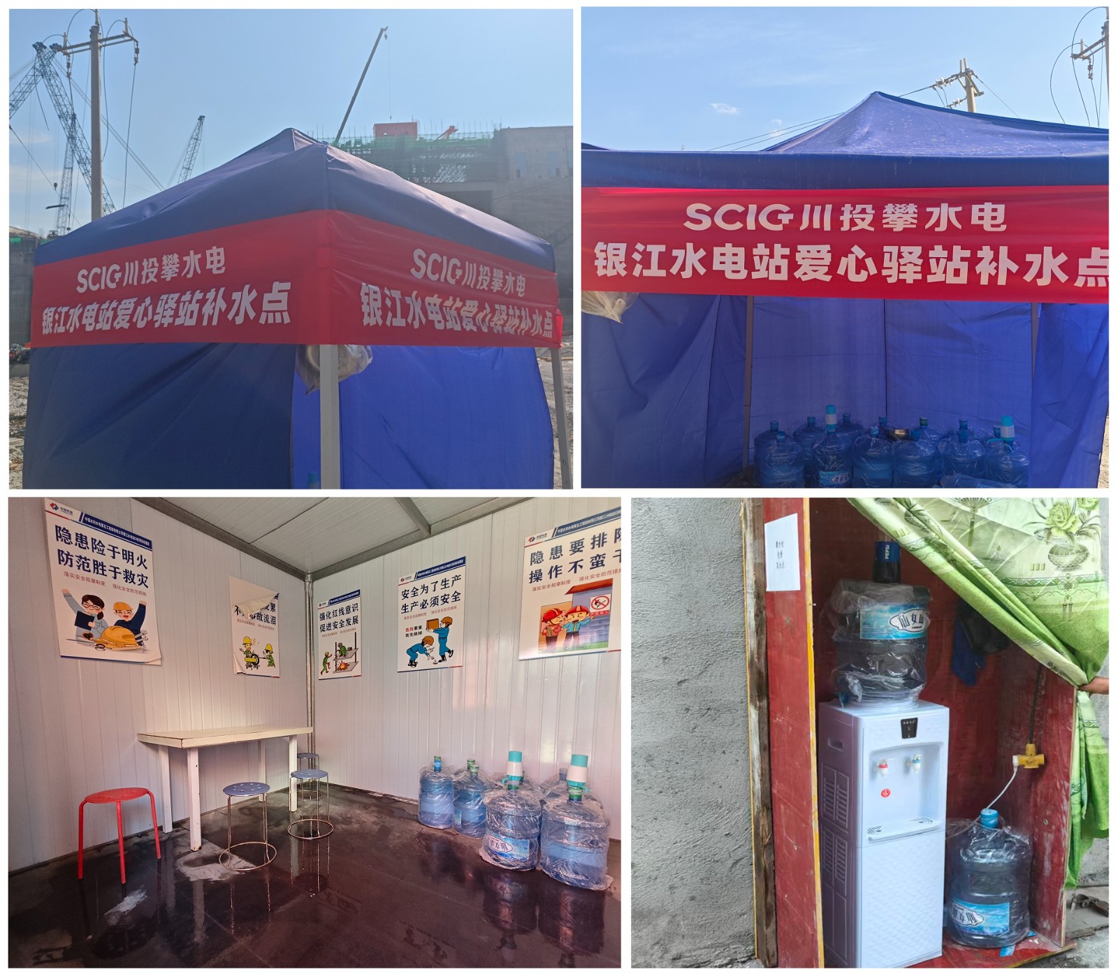 鉴于近期天气炎热,持续高温给一线工人作业带来了巨大挑战,为解决一线工人在施工过程中“饮水难”的问题,公司在银江水电站坝顶、GIS楼、副厂房、鱼道、溢流坝等施工人员密集的部位建立了五处“爱心补水站”,完善送水补水机制,为奋战在烈日下的工友们送去了丝丝凉意与深切关怀,此举为大家解决了实际困难,赢得了工友们的广泛赞誉。