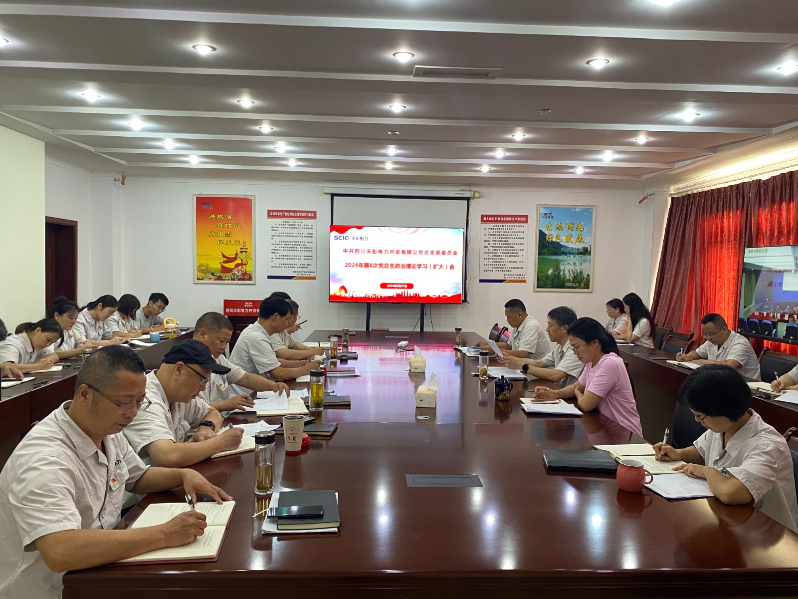 会议强调,公司各级党组织和广大党员干部要切实提高政治站位,深学细悟全会精神,找准全会精神与公司工作的结合点,明确目标、细化措施、压实责任,把学习成果转化为推动工作的强大动力,推动全会精神在公司落地生根、开花结果。要紧密结合实际,在抓好主业的同时密切关注地方政府在新能源项目方面的动态和政策,抢抓机遇扩大公司经营规模,真抓实干推动发展。要针对当前汛期工作,密切关注气象地灾预警信息,加强防汛值班和巡视检查,做好防汛减灾应急准备,并利用汛期丰沛来水组织好发电生产。