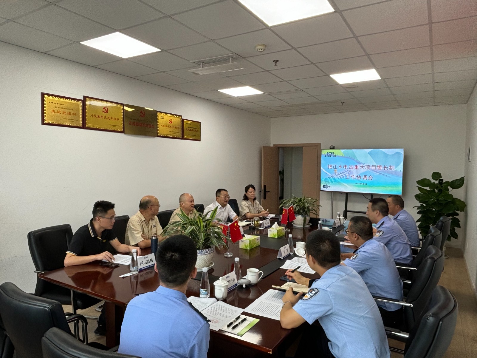 与会人员一致认为,警企双方要进一步坚持党建引领,发挥“重点建设项目警长制”作用,建立协作机制。会议决定,一是定期召开协调会、联席会,加强沟通协调、互通情况,及时为银江项目解决所属范围内的困难问题,全力确保银江水电站项目安全顺利竣工投产,为助力攀枝花市高质量发展建设共同富裕试验区作出积极贡献;二是积极组织警企共建活动,通过党员队伍教育管理,采用联合开展党课、红色教育、主题党日等方式,持续提升警企双方队伍建设水平,培养打造“项目警长护平安、警企共建促发展”的党建品牌。