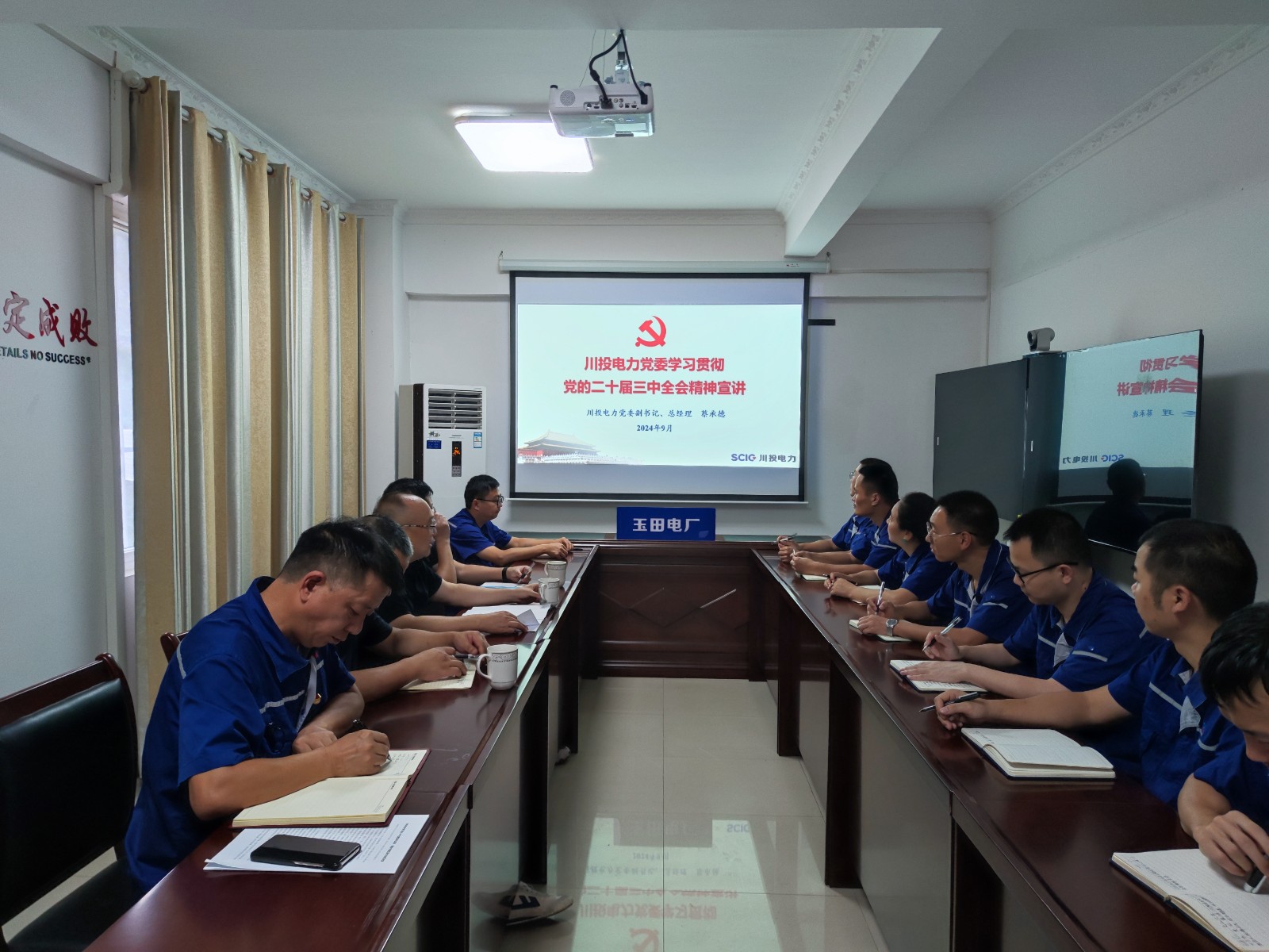 为深入学习贯彻党的二十届三中全会精神,推动全会精神落实落地,9月11日,川投电力党委副书记、总经理蔡承德按照川投电力党委统筹安排,赴玉田电厂党支部开展党的二十届三中全会精神专题宣讲,同时督导全会精神的学习宣传贯彻工作。