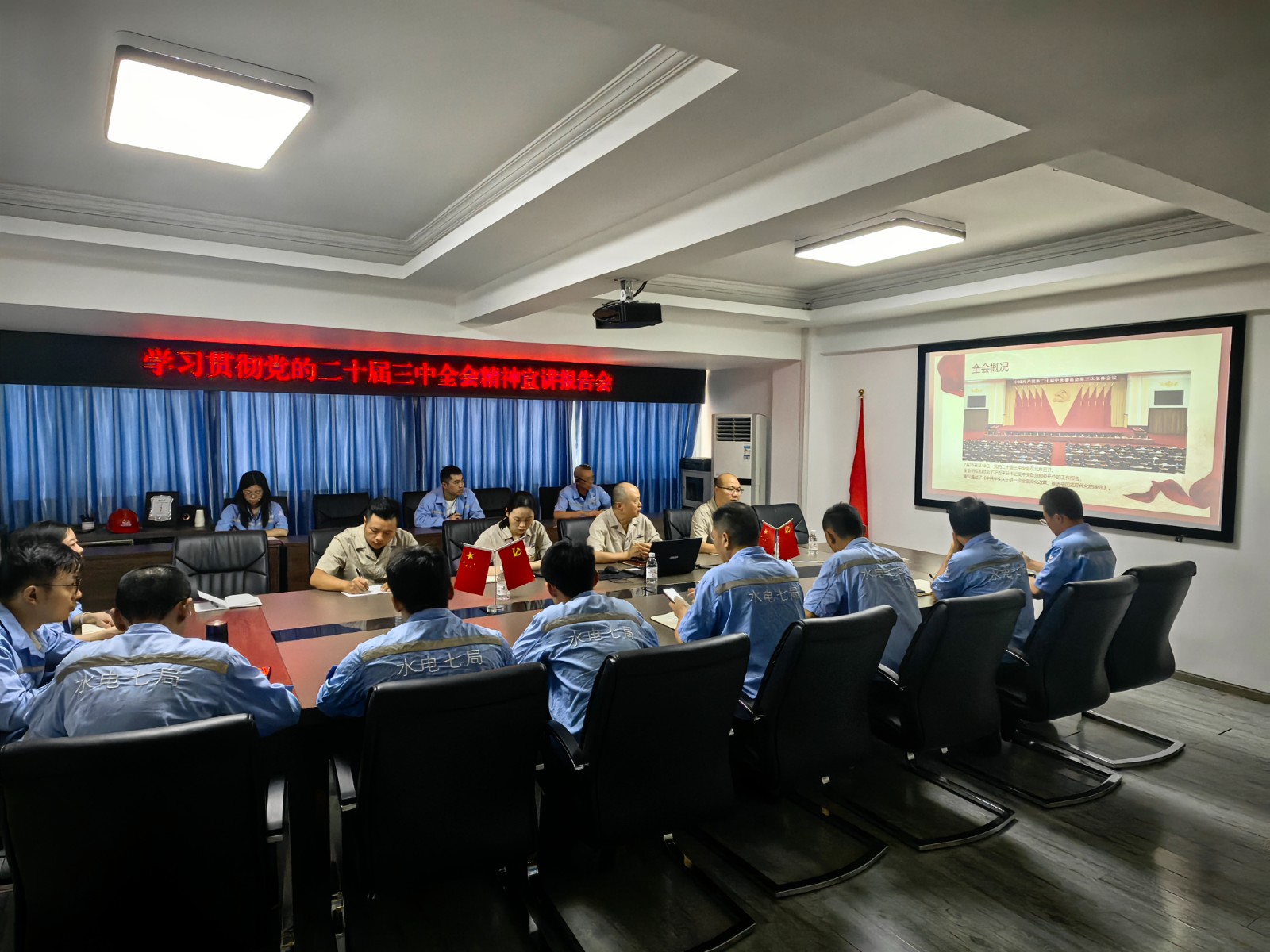 为深入学习宣传贯彻党的二十届三中全会精神,推动全会精神在攀水电公司落地落实,9月13日,攀水电公司党总支副书记、总经理吴巍屿在联系指导党支部及分管部门宣讲了党的二十届三中全会精神。公司计划合同部及水电七局项目部全体党员干部共计17人参加学习。