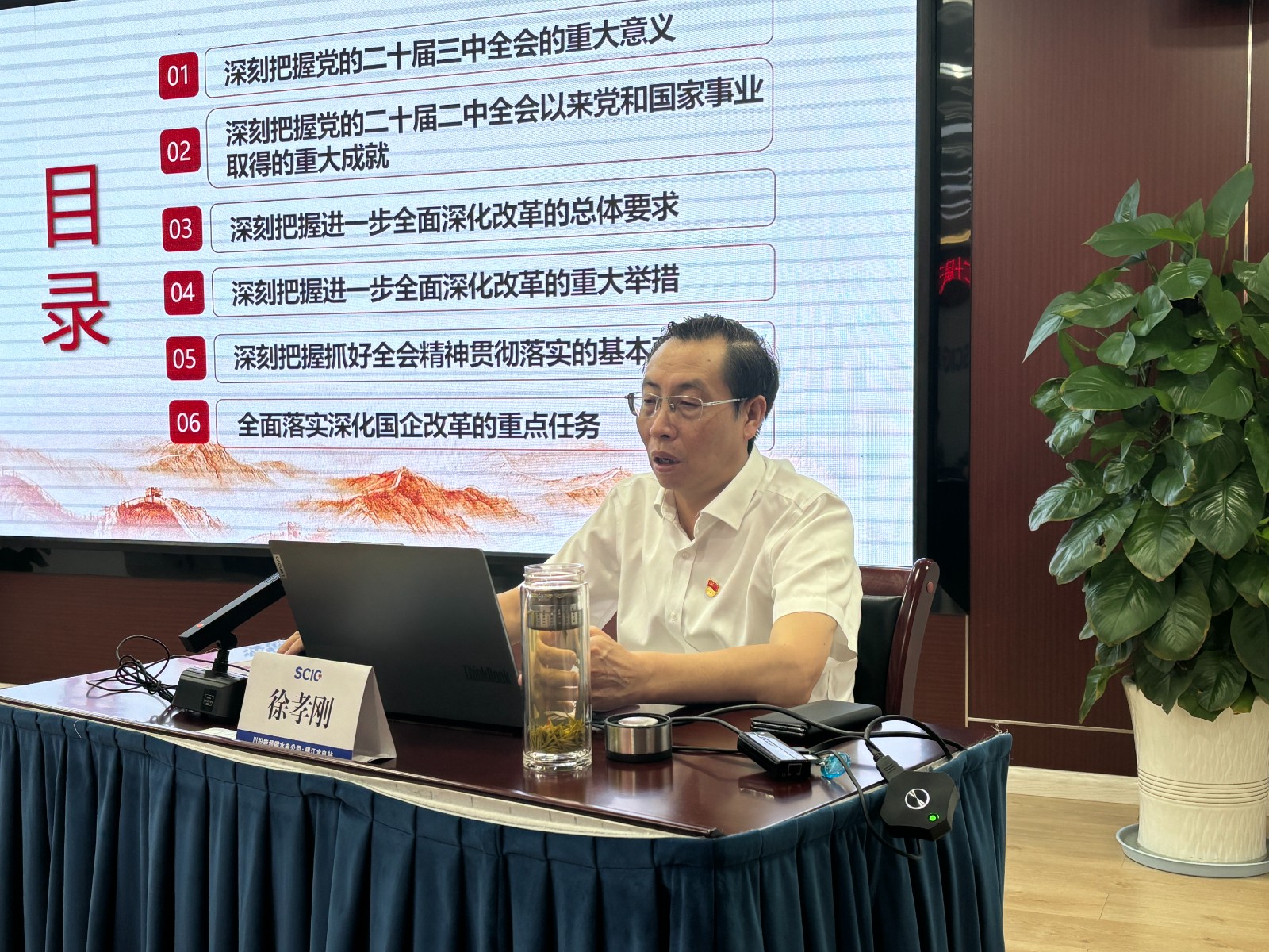 会议首先由徐孝刚宣讲党的二十届三中全会精神,围绕深刻把握党的二十届三中全会的重大意义和进一步全面深化改革的总体要求、重大举措、重点任务等方面进行系统阐述和深入解读,并提出攀水电公司贯彻落实全会精神的工作要求。徐孝刚强调,全体党员同志务必以全会精神为指引,充分发挥党员先锋模范作用,站在更高的政治高度,肩负起更强的责任,切实把全会精神转化为推动工程建设的强劲动力与实际作为,向着工程蓄水发电目标全力冲刺。