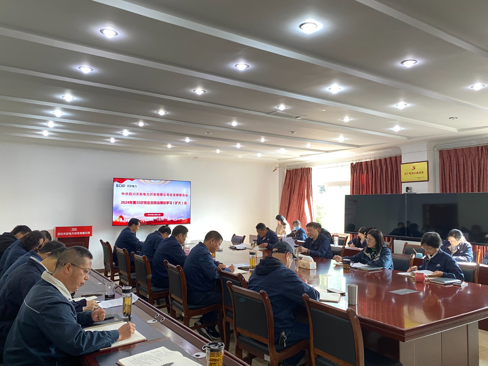 10月22日,天彭电力党总支召开2024年第10次党总支政治理论学习(扩大)会议,公司领导班子成员围绕“深入学习贯彻省委十二届六次全会精神,以改革助推党建和安全生产经营开新局谱新篇”主题,结合各自分管领域和工作实际开展交流研讨,并提出具体思路举措。会议由公司党总支书记、执行董事、总经理刘红兵主持,公司领导班子、党员干部及关键岗位人员参加学习会。