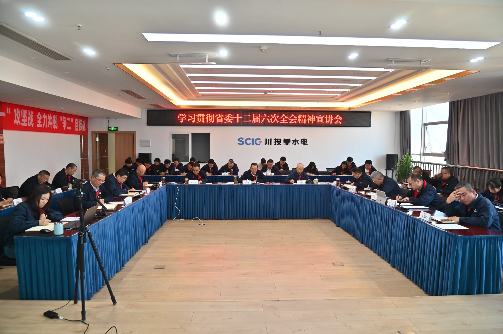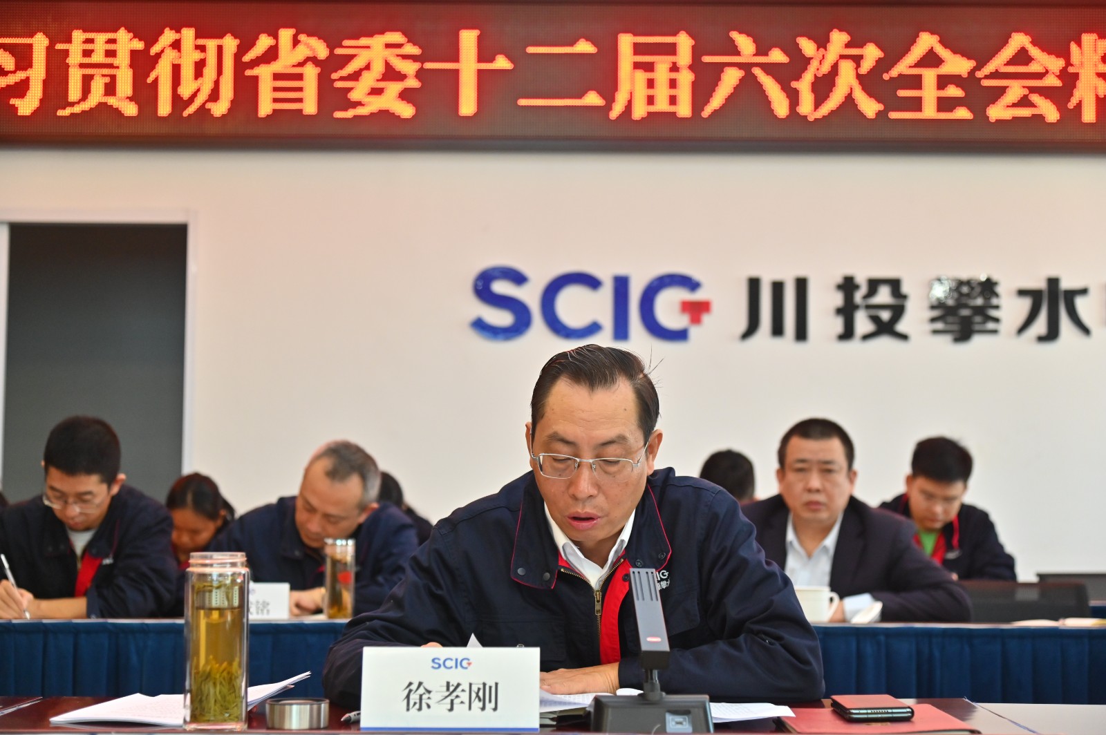 为深入学习贯彻省委十二届六次全会精神,推动全会精神在攀水电公司和银江水电站落地落实,11月24日上午,吃瓜副总经理,攀水电公司党总支书记、董事长徐孝刚开展了省委十二届六次全会精神宣讲。会议以“现场+视频”形式召开,公司和水电五局项目部全体党员、干部职工代表共计50余人参加学习。
