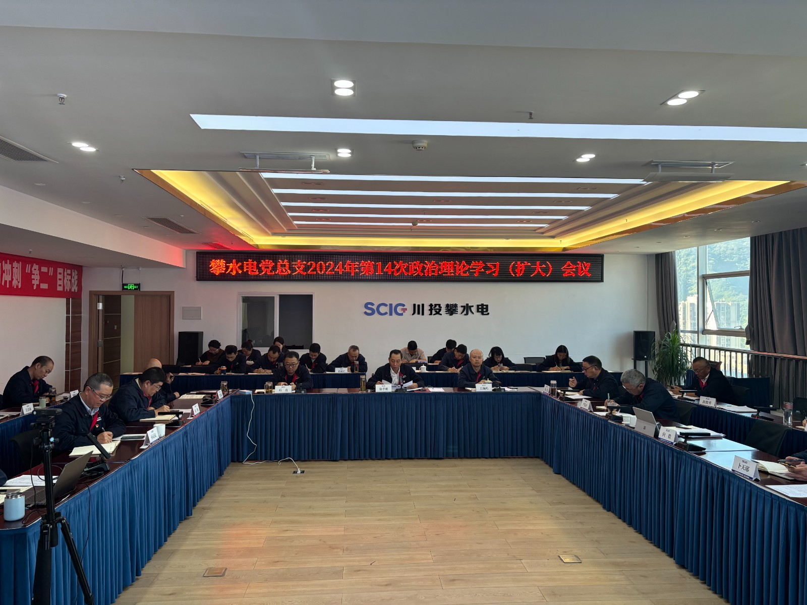 为深入贯彻落实习近平总书记近期重要讲话精神,树牢安全环保和廉洁从业精神,近日,攀水电党总支在公司2620会议室召开了2024年第14次政治理论学习(扩大)会议,学习第一议题、上级会议、文件、安全环保、廉政警示教育等相关内容。吃瓜副总经理、攀水电公司党总支书记、董事长徐孝刚主持会议,攀水电公司党员干部、统战对象、入党积极分子共30余人参加学习。