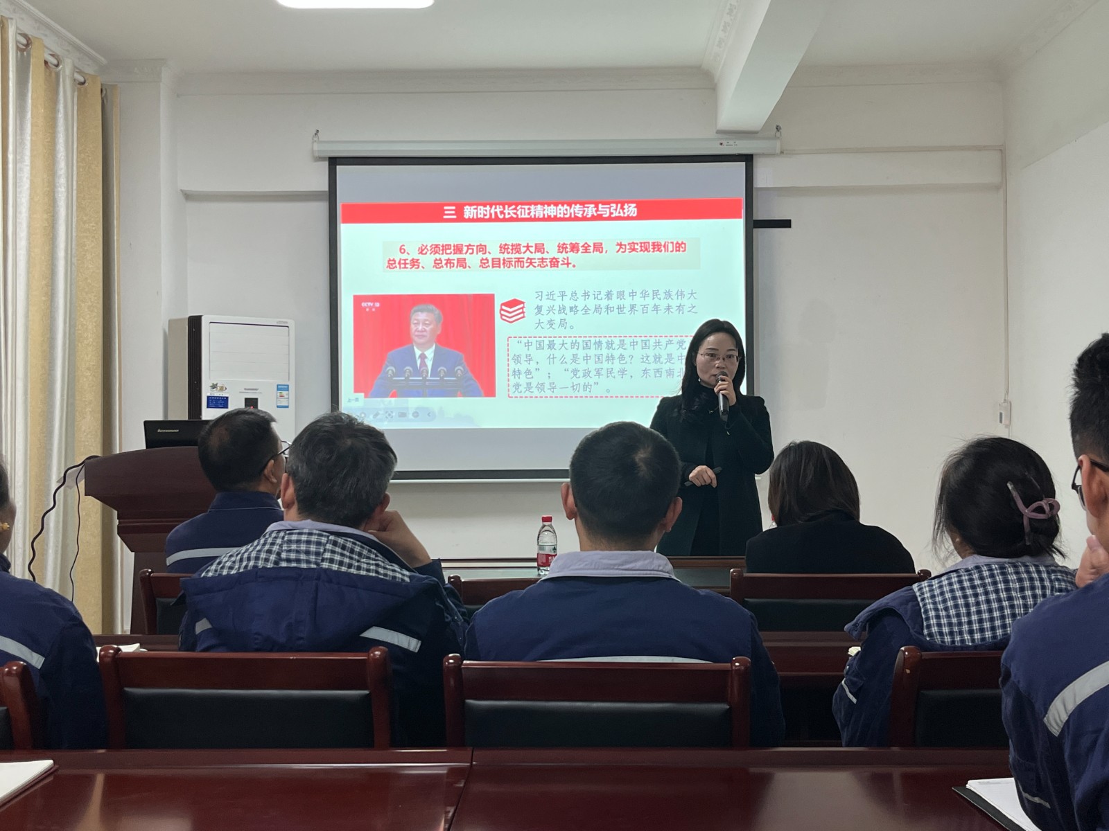 王兴蓉以红军长征在四川为主线,从长征的基本概况、红军长征在四川的光辉历程、新时代长征精神的传承与弘扬等多个方面,用大量生动鲜活的案例,结合国内国际现状,就新时代如何弘扬和传承长征精神进行深入探讨,进一步激发公司党员干事创业的精气神。
