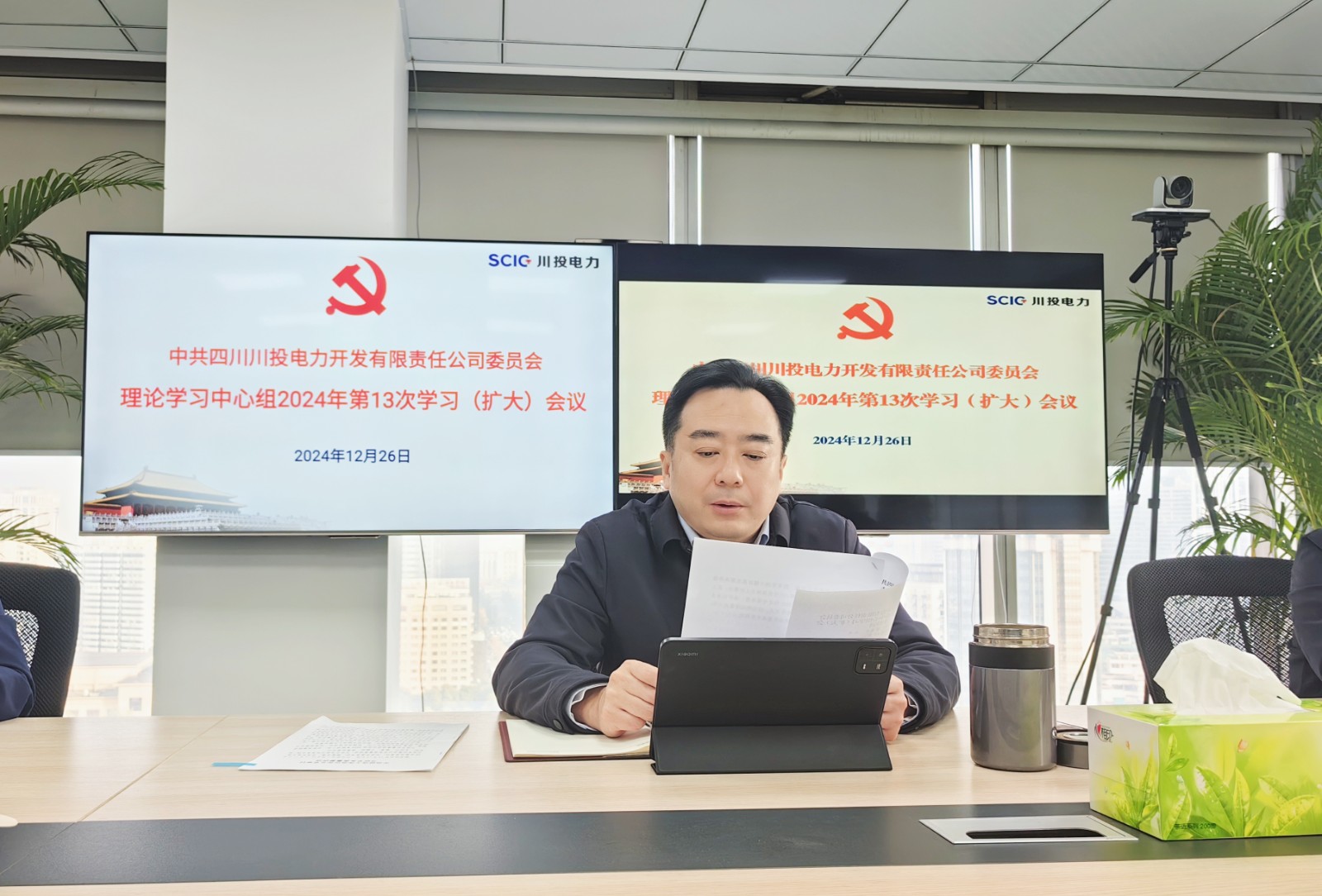 近日,川投电力党委理论学习中心组召开2024年第13次学习(扩大)会议,集中传达学习中央经济工作会议精神和12月23日省委经济工作会议精神,研究贯彻落实意见。川投电力党委书记、董事长杨涛主持会议。