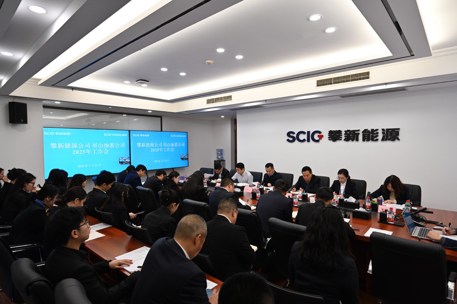 2月21日,攀新能源公司、屏山抽蓄公司组织召开2025年工作会。吃瓜副总经理,攀新能源公司党支部书记、董事长,屏山抽蓄公司董事长王行仁出席会议并讲话,攀新能源公司党支部副书记、工会主席、副总经理郭梦夏主持会议。