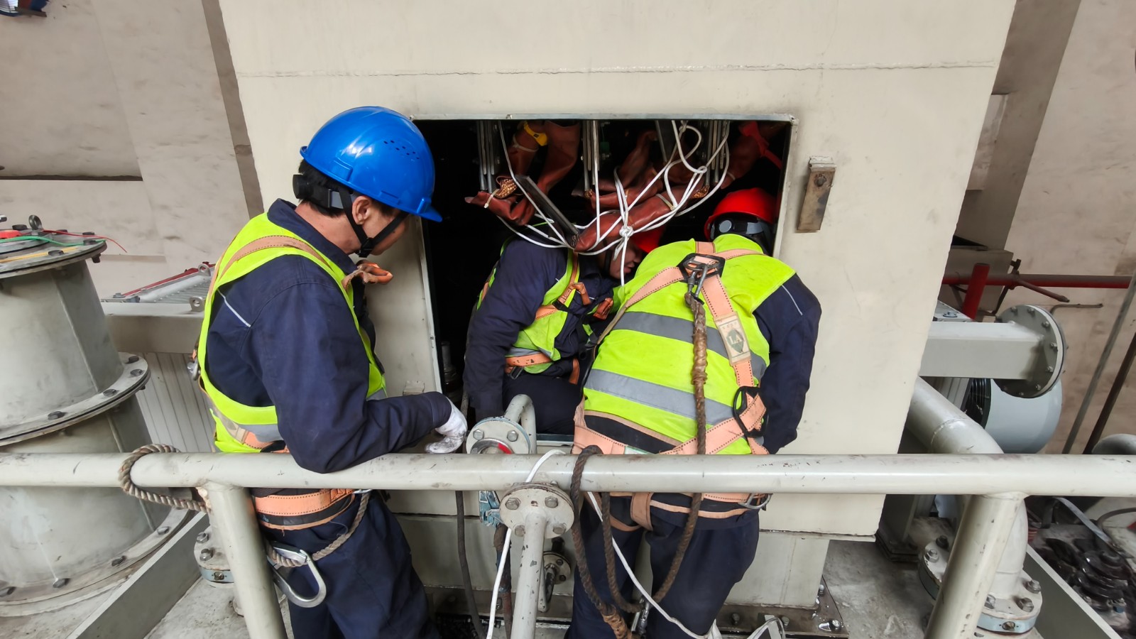 因上游电厂突发情况,导致本次停电时间延误、有效作业时间缩短,本次检修任务面临严峻考验。3月13日,脚基坪电厂迅速组建了一支由6名技术骨干组成的党员先锋队。在检修工作中,充分发挥党员的先锋模范作用,以身作则,冲锋在前,用实际行动诠释了党员的责任与担当。主动加班加点,相互协作,密切配合,共同攻克了一个又一个技术难关,确保了检修工作的顺利进行。同时,结合检修现场实际情况,提出了一系列切实可行的优化方案,有效提升了检修效率和质量。党员先锋队队员们精神抖擞,即便面对海量操作任务,也丝毫不减严谨态度,共完成2项检修项目、3项技术改造、全厂电气设备预防性试验。