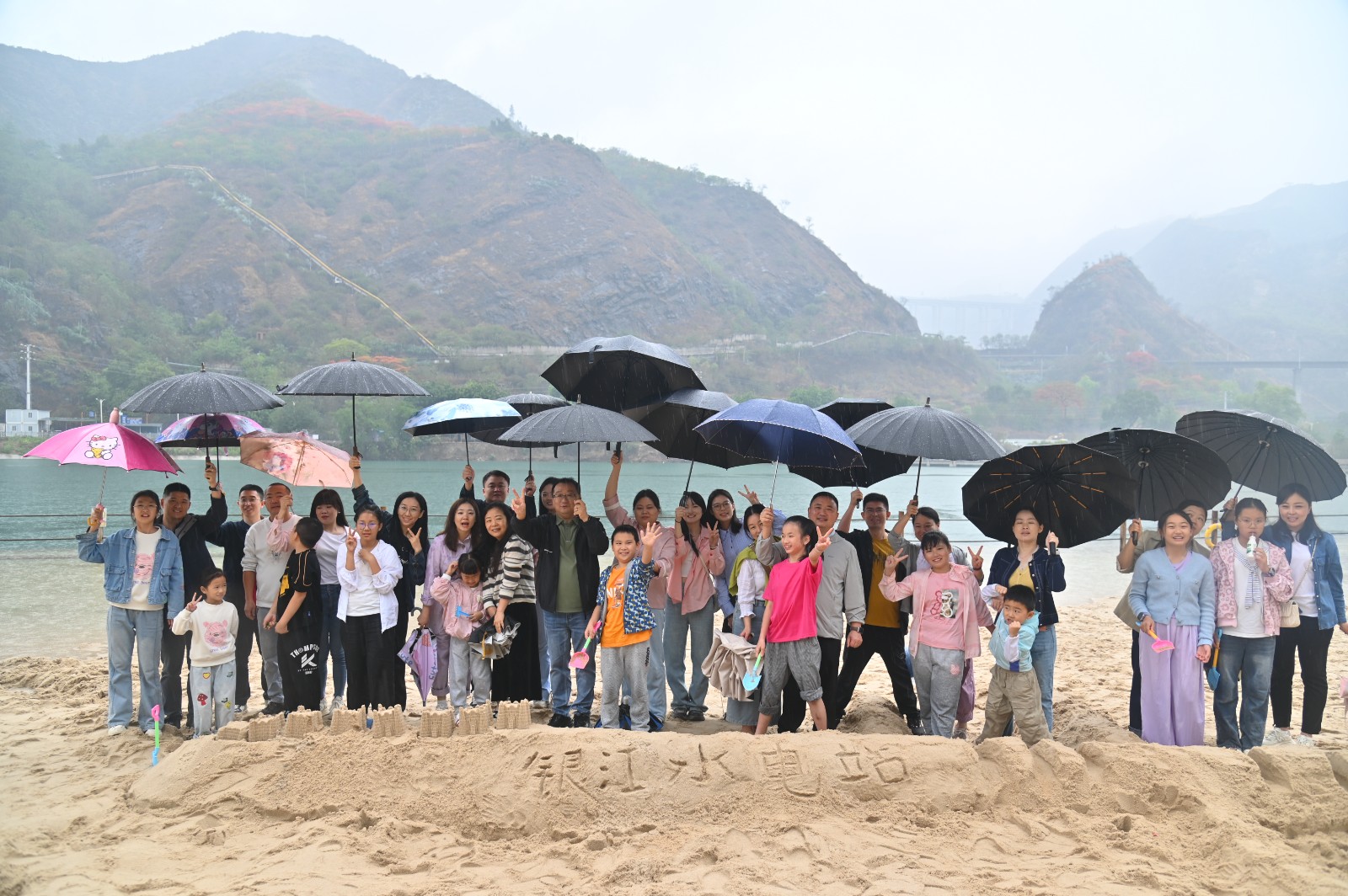 随后,大家来到银江湖,亲身体验银江水电站蓄水后给攀枝花市民带来的变化。淅淅沥沥的小雨丝毫浇不灭孩子们的热情,他们用小铲子、小桶挖来沙堆共同堆砌自己心中的“银江水电站”。银江湖畔不时传出孩子们的笑声和欢呼声,生动诠释了工程建设与生态保护的和谐共生。