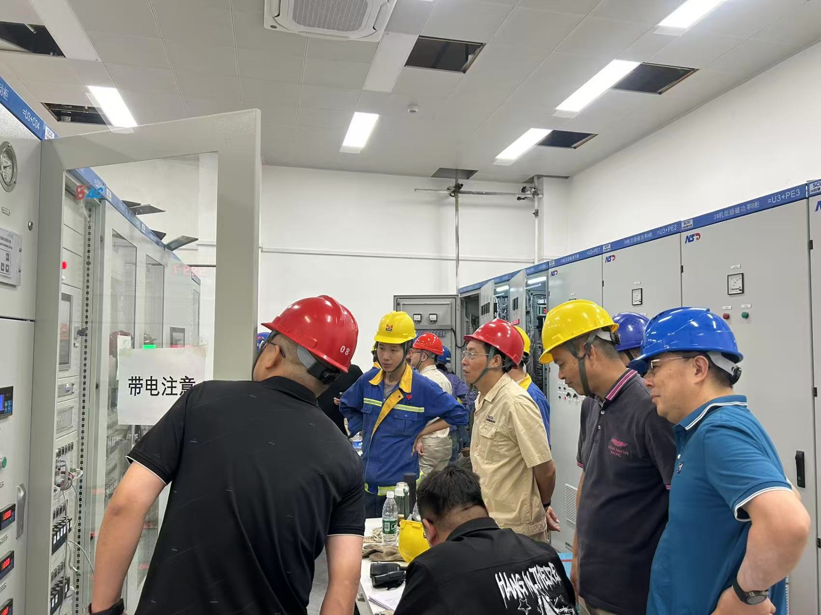 2025年攀枝花汛期比往年来的更早一些,为保障银江水电站顺利度汛和后续机组顺利安装,5月31日3号机组必须完成开机启动,具备过流条件。为此,进入5月以来,公司带领各参建单位日夜奋战在施工现场,实行公司领导承包划片进行工作督导,施工现场经常深夜还能看见公司领导现场忙碌的身影,经过不懈努力先后完成了3号机组主机、辅机、调速器、机组油、气和水系统、计算机监控系统、励磁系统、继电保护系统等设备的安装调试工作。5月30日随着尾水事故闸门充水阀缓慢打开,3号机组流道开始充水,5月31日检查灯炮体、管形座、流道盖板、导水机构及各排水阀等各部位正常,3号机组各系统单体、联调正常,随着指挥长徐孝刚一声令下,3号机组手动启动,并成功升速至100%额定转速,机组振动、摆度、瓦温等各项指标优良,机组运行状态稳定,首次启动成功。