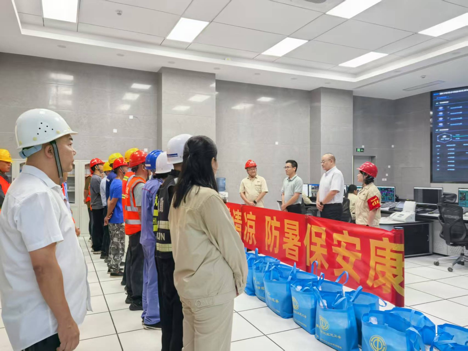 慰问现场,张平首先向银江水电站一线人员表示亲切的问候,对大家在高温酷暑下坚守岗位、辛勤工作的精神表示高度的赞扬,叮嘱大家一定要保证安全建设、安全生产,全面做好各类防护措施,注意自身安全和健康。希望攀水电公司能够继续发扬优良传统,牢固树立以人为本的理念,压实安全管理责任,认真落实安全生产月活动要求,密切关注气象预警,严格执行高温天气作业规定,切实维护广大职工的劳动安全健康权益,做好防暑降温服务工作,在银江水电站形成人人抓安全、人人担责任的良好氛围,切实筑牢安全生产防线。