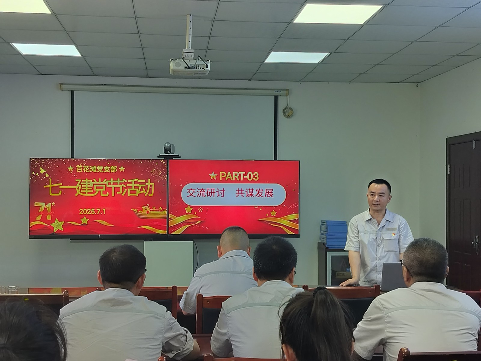 为庆祝中国共产党成立104周年,7月1日,百花滩党支部开展“奋进新征程 建功新时代” 主题党日活动,党支部全体党员、预备党员、入党积极分子齐聚一堂,以丰富形式共忆初心、共学理论、共谋发展。