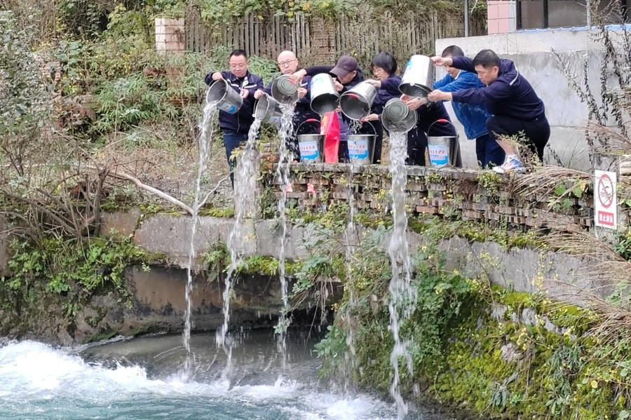 11月14日,在属地政府、主管部门及当地群众共同见证下,10000尾重口裂腹鱼苗,从凤鸣湖大坝上游汇入了清澈见底的沙金河。