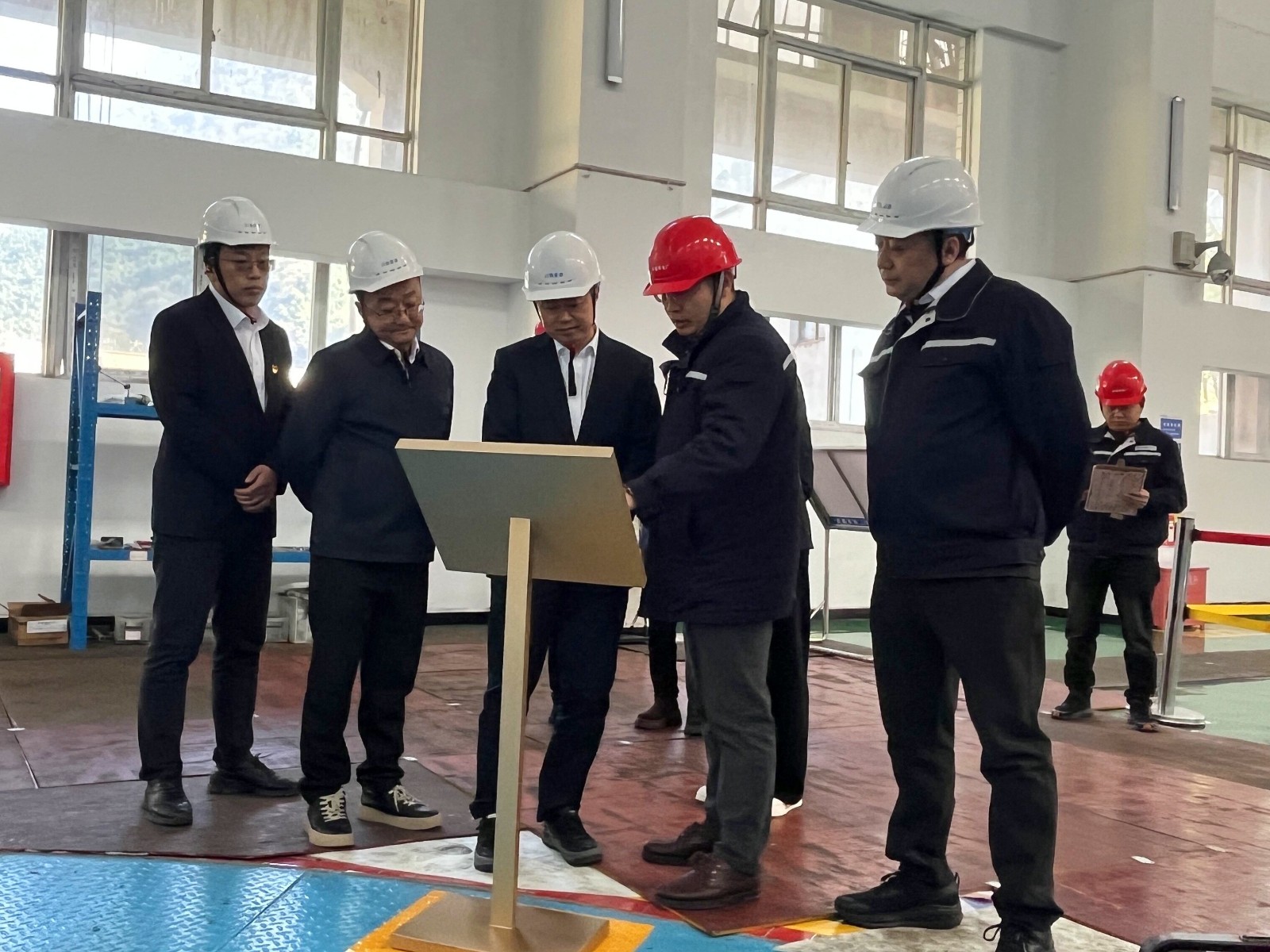吴巍屿一行深入脚基坪电厂生产现场及检修作业区,实地考察电厂设备运行与维护情况。脚基坪电厂党支部书记、厂长赵兵重点介绍了电厂在自主检修、设备管理及安全生产标准化等方面的创新举措。双方围绕设备管理优化、技术升级改造等议题展开广泛交流,并在水电行业提质增效的新路径上发表了见解。