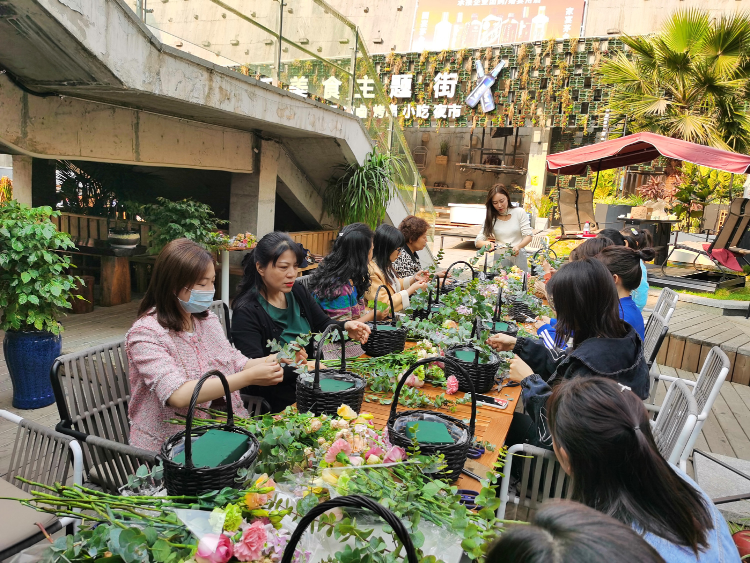 专业的花艺老师为大家讲授了鲜花的选花、色彩搭配、造型、保鲜方法和插花技巧,大家自己精心设计后,一盆盆细致精美的插花作品逐渐完工。
