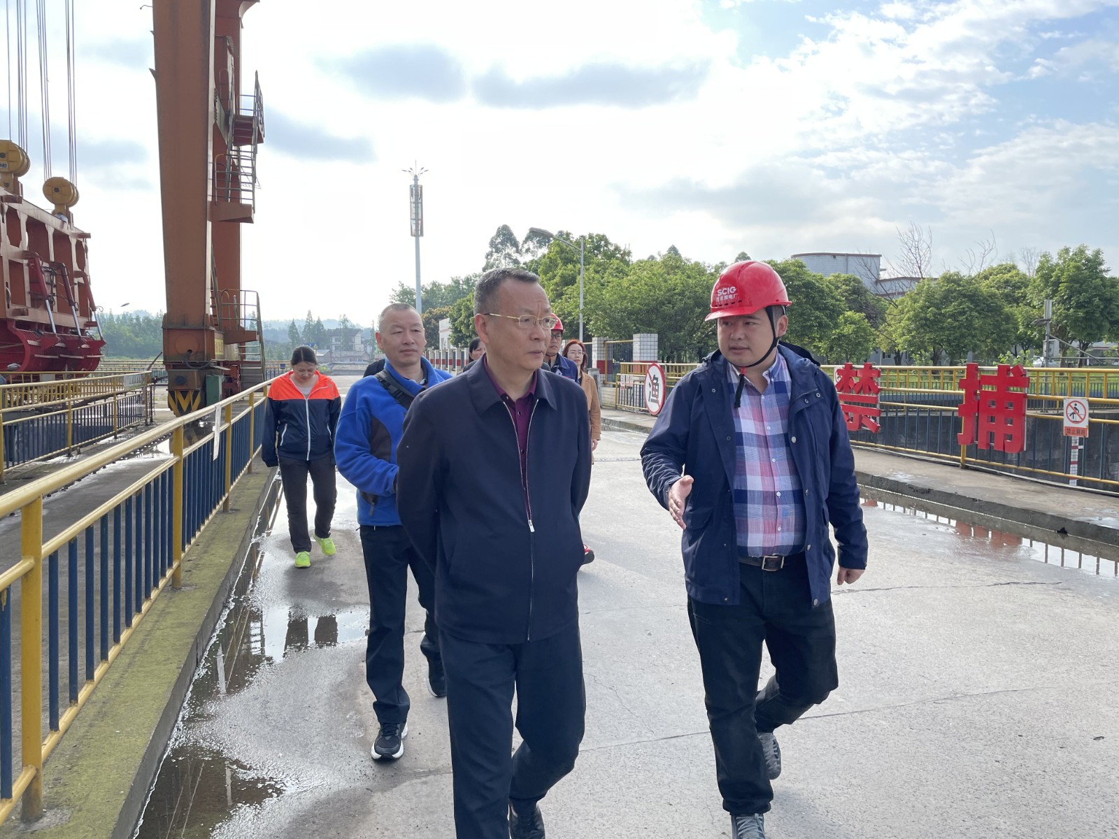 4月26日上午,洪雅县政协副主席王成宏率队到吃瓜川投电力公司所属百花滩电站调研生态环保工作,百花滩电站副厂长姚磊及相关工作人员陪同调研。