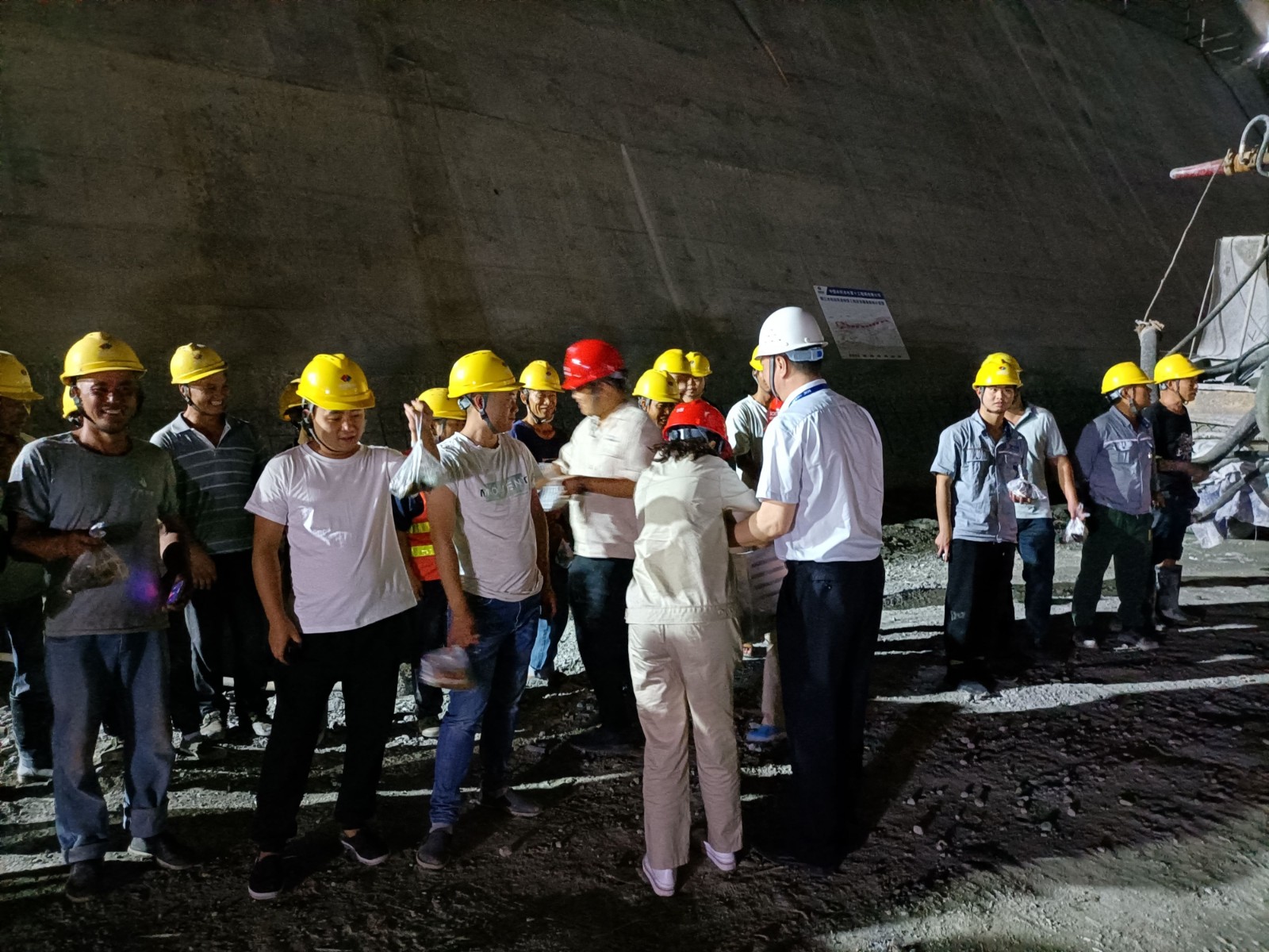 6月13日端午节前夕深夜,公司值班领导、党总支委员、董事会秘书、工会主席邓勇,总经理助理唐伽带领值班人员,对银江水电站工地现场防洪度汛值班点位及施工现场进行了检查;公司志愿者服务队共计10余人对节日期间坚守在银江水电站工地夜间施工的一线人员进行了慰问。