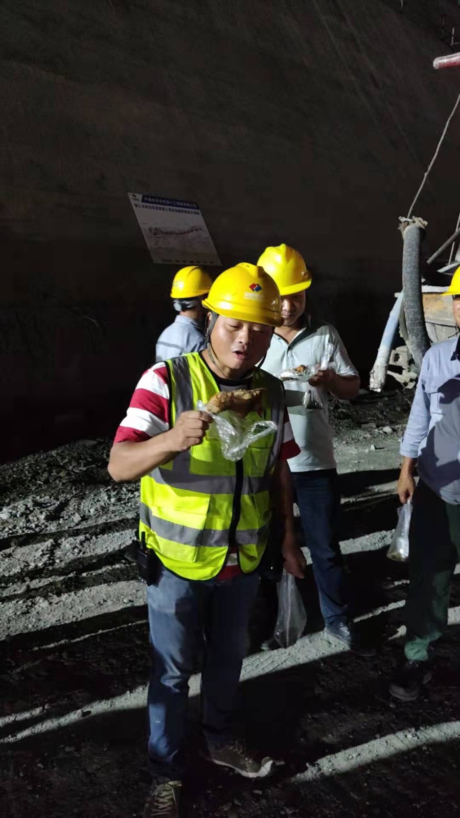 当日下午公司志愿者就开始忙活起来,卤鸡腿、包粽子、煮盐蛋,采用流水线工作方式,把热乎乎的鸡腿、粽子、咸鸭蛋等进行分装,方便工友在工地食用。晚上十点,慰问人员分成三组,分别前往康家沟渣场、银江大桥、导流明渠、砂石骨料加工系统、混凝土生产系统等值班点位和夜间施工现场,将慰问品送到一线工友们的手中,对端午佳节期间依然奋战在施工一线的人员致以亲切问候,对大家咬紧牙关、不畏疲劳、迎难而上的工作态度表示充分肯定,对大家舍小家顾大家的奉献精神致以崇高敬意,同时叮嘱大家一定要注意身体健康和夜间施工安全。