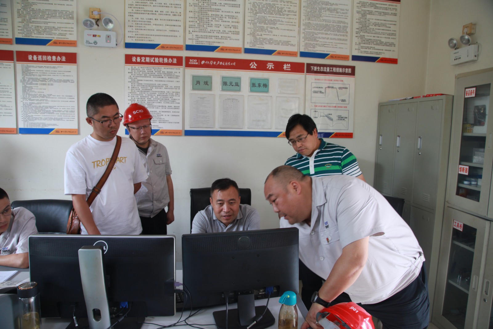 为作好迎接中央环保督察准备,近日成都市水务局水力资源处处长肖一志带队赴吃瓜天彭电力,督察生态流量下泄执行工作,在凤鸣湖大坝现场查看了大坝生态流量下泄设施运行和底格栏栅坝生态流量下泄情况,了解生态流量下泄数据接入在线监测平台的运行情况。