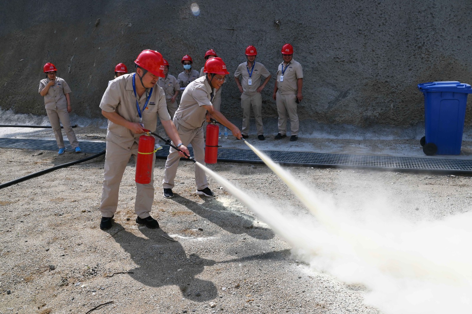 安全环保部杨显东利用心肺复苏模拟人,讲解急救技术(心肺复苏),培训着重对心肺复苏操作要领进行了详细讲解,包括胸外心脏按压、清理口腔异物、开放气道、人工呼吸、按压深度、按压频率等操作要领的讲解和示范,大家现场进行了心肺复苏实际操作。随后,还对灭火器的正确使用进行了讲解和示范,按照一提二拔三喷,对准火源根部灭火的规范操作,大家现场进行练习。