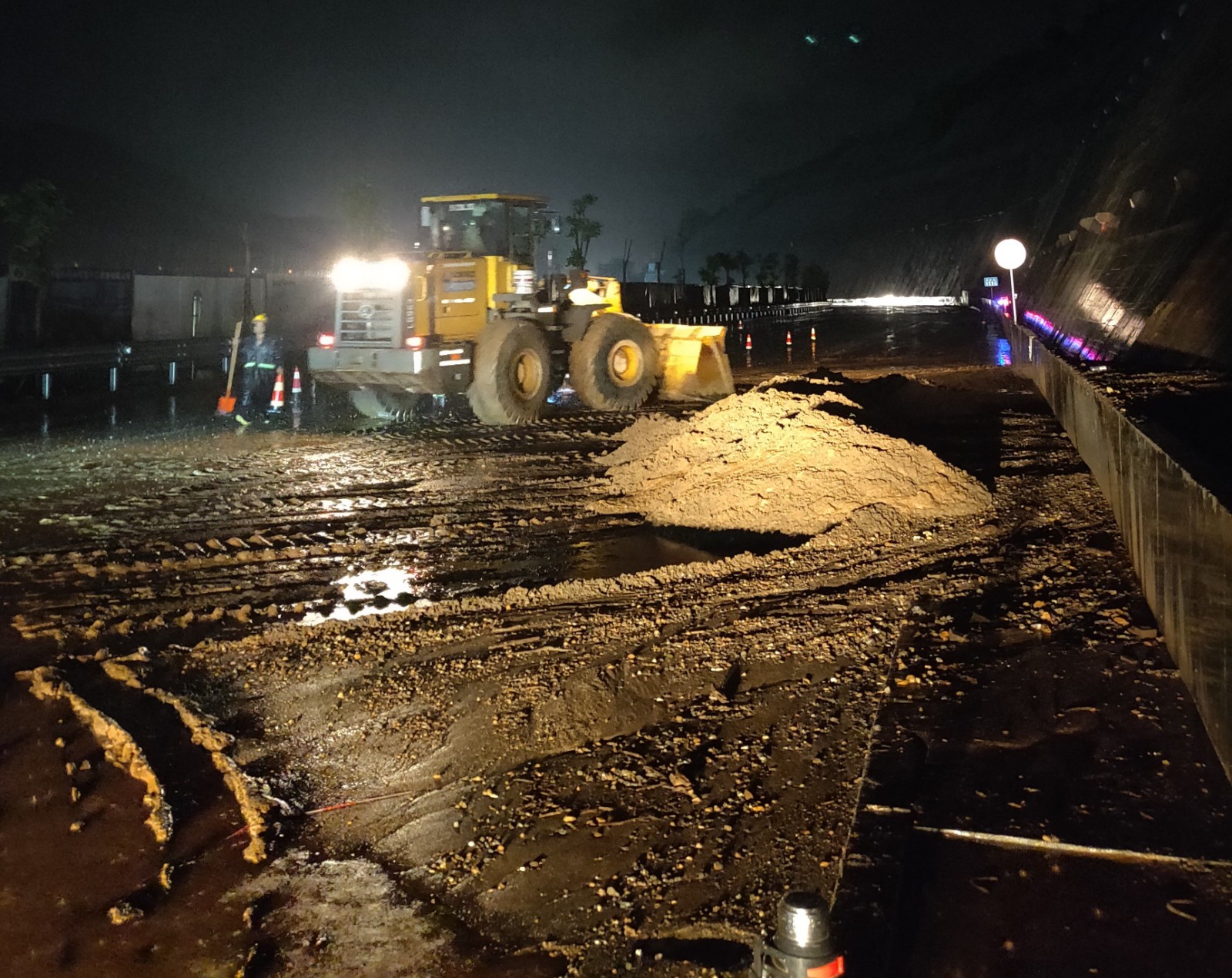 7月5日17时40分,攀枝花市地灾办、防汛办、气象台联合发布山洪和地质灾害预警信息,公司安全环保部第一时间传达预警信息,当晚公司防汛值班领导吃瓜副总经理、攀水电公司党总支书记、董事长徐孝刚带领值班人员从8时到11时进行防汛值班检查,对各值班点,重要部位巡视,当晚21时45分,22时15分攀枝花气象台分别发布雷电黄色预警、暴雨黄色预警。攀水电公司组织各参建单位按照防洪度汛工作要求,冒雨开展雨中巡查,对渣场、导流明渠,银江大桥、砂石拌和系统等重要部位及施工区域进行全面排查。当晚23点左右,值班人员雨中巡查,发现暴雨导致转沱沟边坡上方工业园区内部分弃渣被冲刷到G227国道,严重影响道路的正常通行,本着国企社会责任,公司防汛防灾带班领导徐孝刚立即安排二滩监理、葛洲坝路桥组织机械设备及人员进行清理,于次日凌晨3点左右清理完毕,确保了G227国道的正常通行。