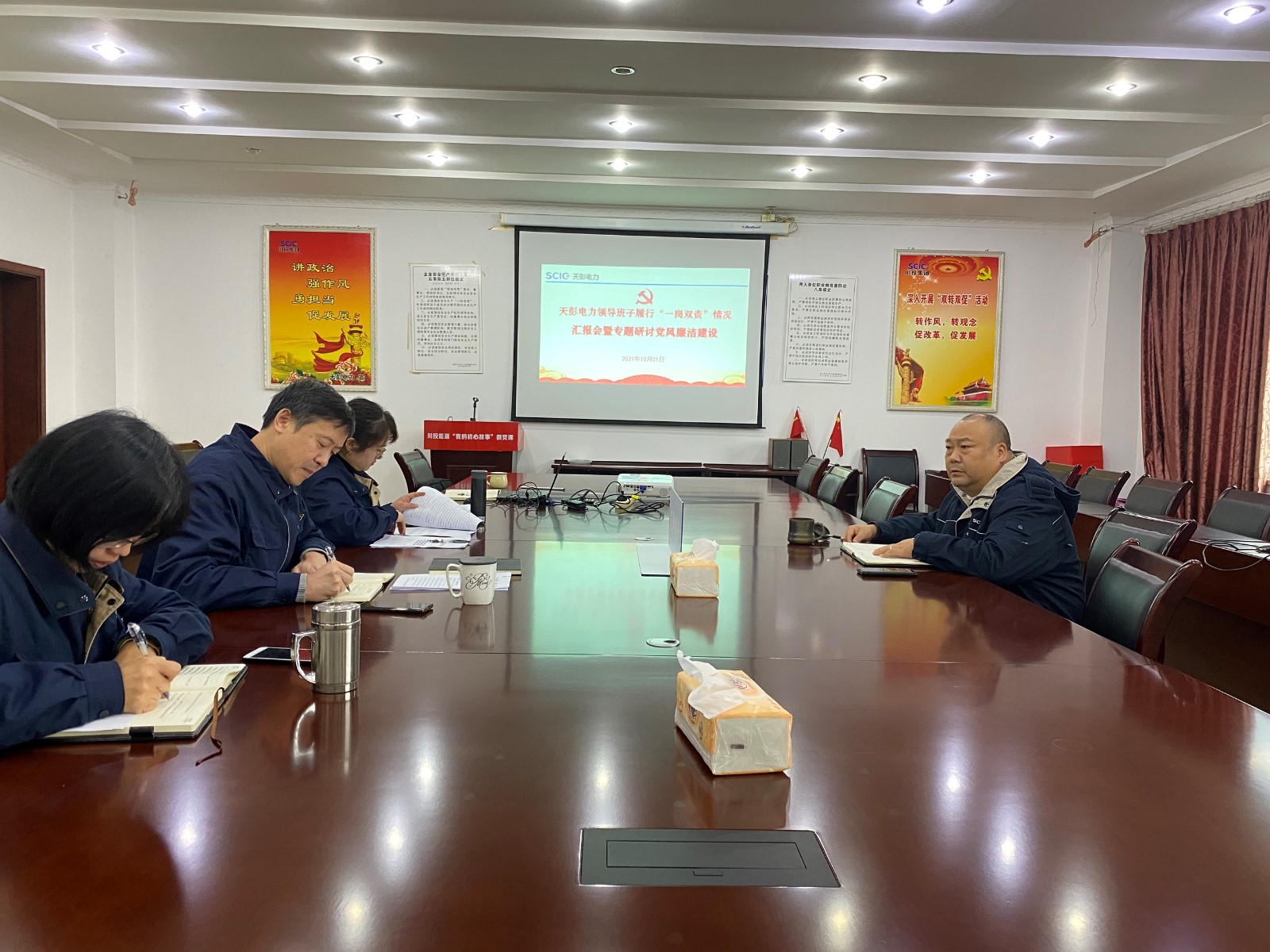 为贯彻落实全面从严治党总体要求,根据上级党委工作安排,10月21日,天彭电力召开领导班子履行“一岗双责”情况汇报会暨专题研讨党风廉政建设和反腐败工作会议,着力推动全面从严治党向纵深推进。