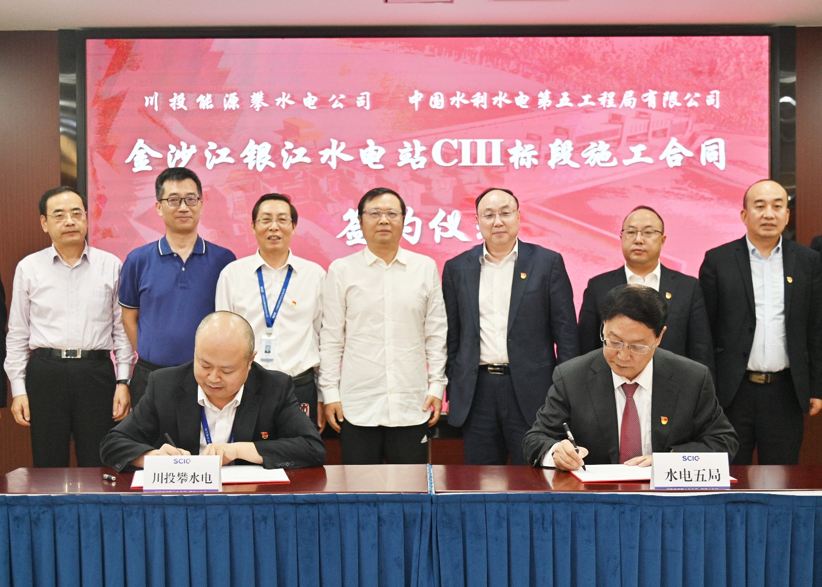 10月29日上午,攀水电公司与中国水利水电第五工程局有限公司在2620会议室举行金沙江银江水电站CIII标段施工合同签约仪式。川投集团党委委员、副总经理舒勇,总经理助理、经营管理部部长李胜章,专职外派董监事孙志祥,中国水利水电第五工程局有限公司党委书记、董事长贺鹏程,副总工程师、五分局局长李福林,吃瓜副总经理、攀水电公司党总支书记、董事长徐孝刚,攀水电公司党总支委员、副总经理吴巍屿出席签约仪式。签约仪式由攀水电公司党总支委员、董事会秘书、工会主席邓勇主持。