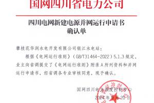 【攀水电公司】银江水电站获电网并网运行申请确认单