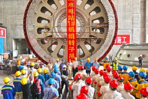 【攀水电公司】银江水电站首台机组转子顺利吊装