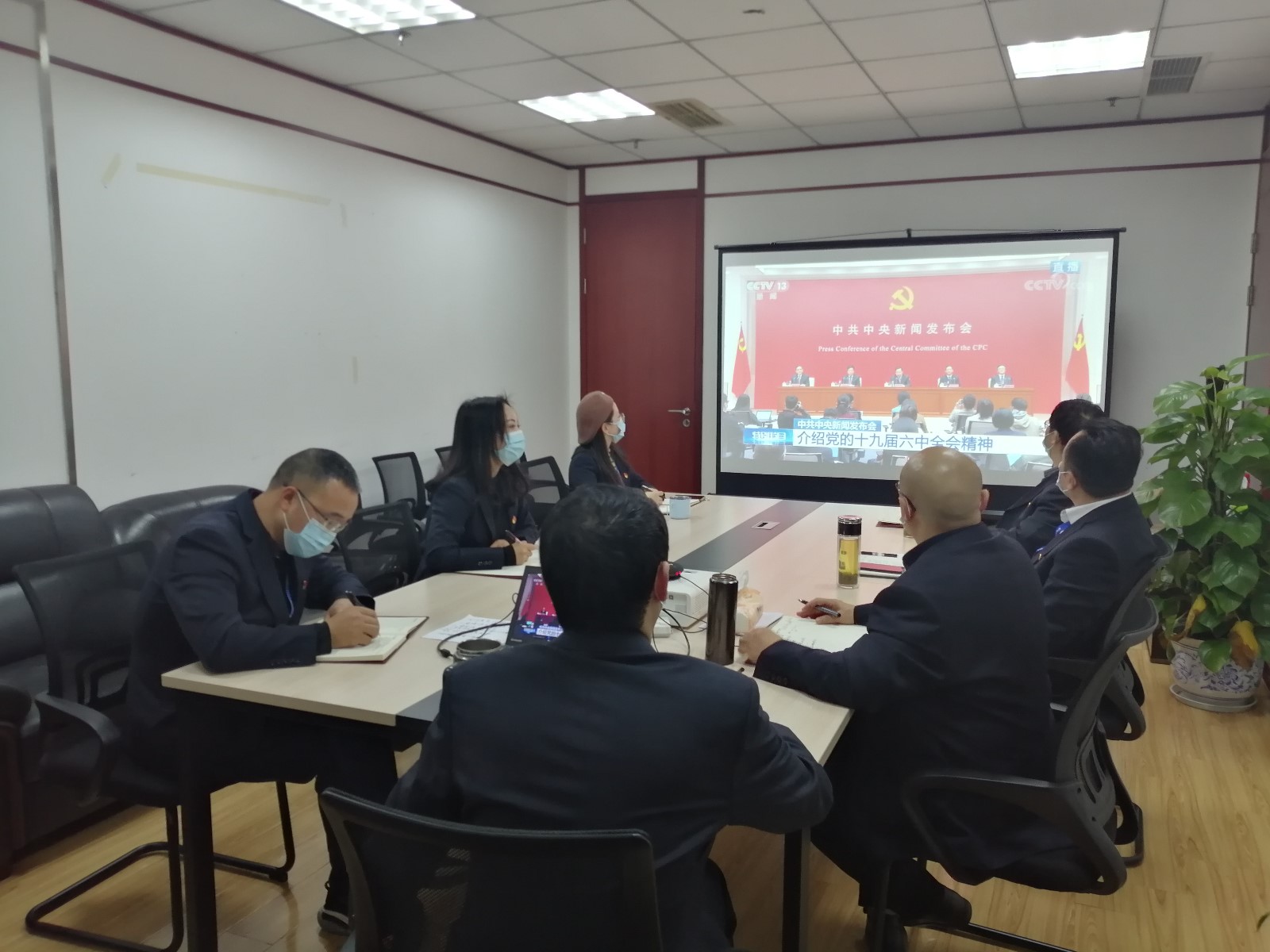 2021年11月12日上午10时,中共中央就党的十九届六中全会精神举行新闻发布会。吃瓜党委组织本部及下属子公司党员职工200余人,采取会场观看、工位学习、手机收看等多种方式实时观看大会,会议严格遵循集团公司疫情防控视频会各项要求。