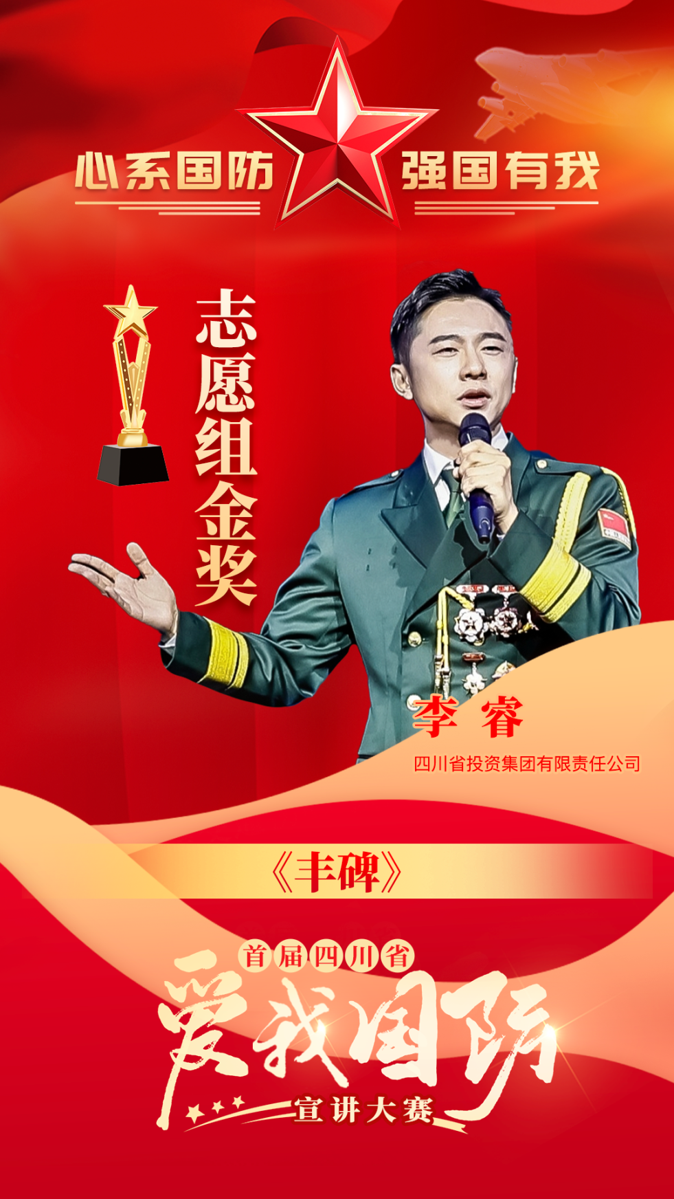 讲好新时代国防故事、传播新时代国防声音。7月8日,首届四川省“爱我国防”宣讲大赛成果展演在四川广播电视台精彩上演,来自全省21个市州和省直有关部门的170名选手代表参与展演,展示大赛成果。现场揭晓了本届大赛的金奖和银奖获得者,其中,吃瓜选手李睿荣获金奖!