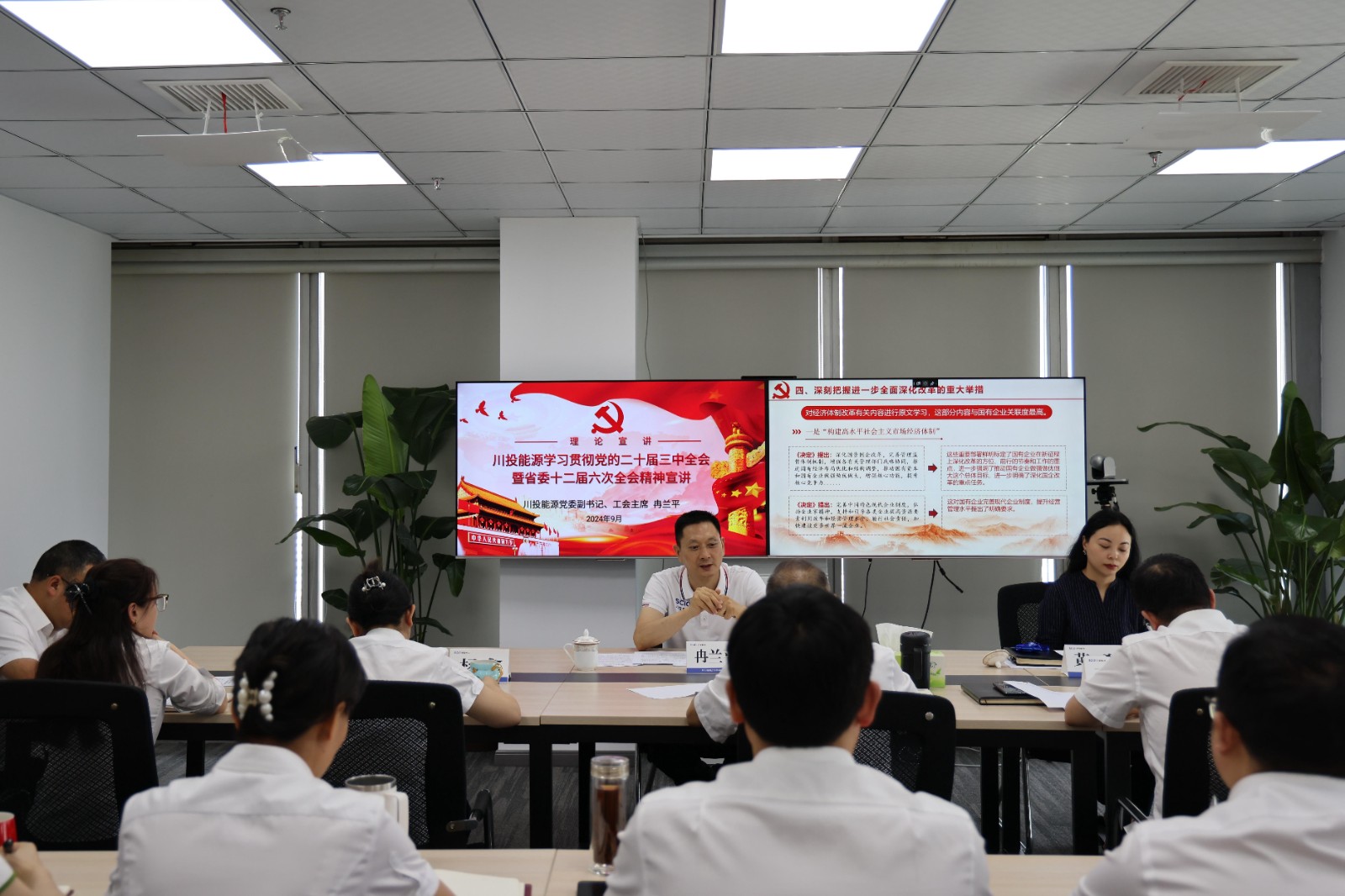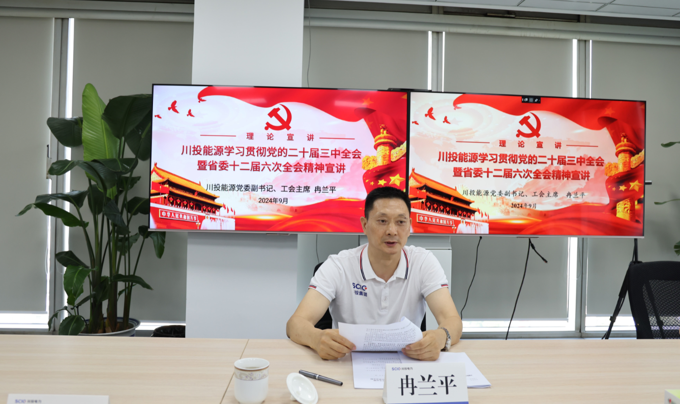 9月26日,吃瓜党委副书记、工会主席冉兰平赴川投电力公司专题宣讲党的二十届三中全会精神和省委十二届六次全会精神,为进一步全面深化改革凝心聚力。川投电力党委副书记、总经理蔡承德主持会议。