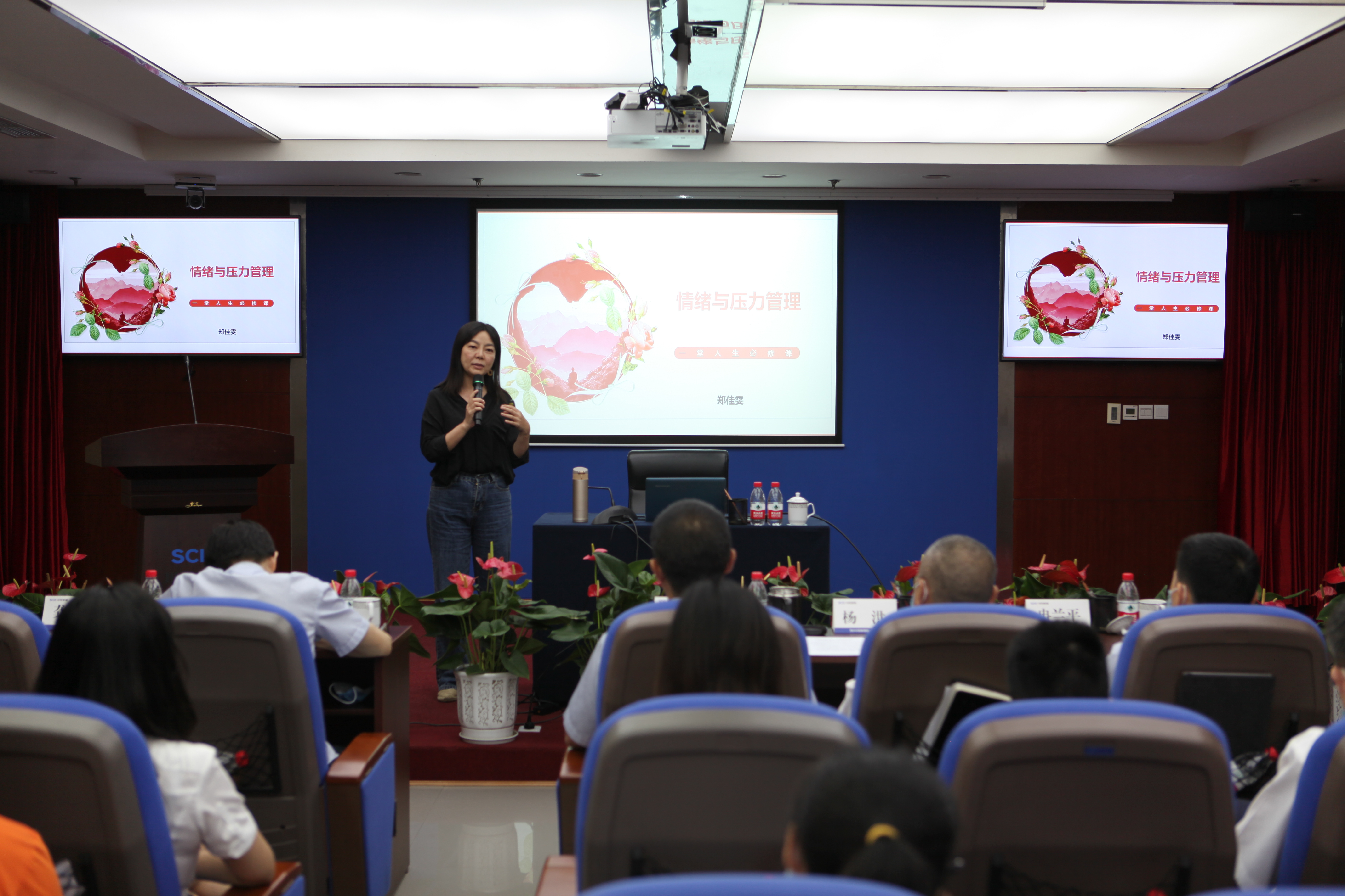 日前,为有效缓解公司员工工作压力,疏通堵点,赋能充电,吃瓜在川投大厦601会议室举行一场既生动又风趣的《情绪与压力管理》培训讲座,特邀国家注册二级心理管理师、国家注册音乐治疗师、国家心理学临床讲师郑佳雯老师授课,公司本部及所属公司通过现场与线下相结合方式共100余人参加学习。