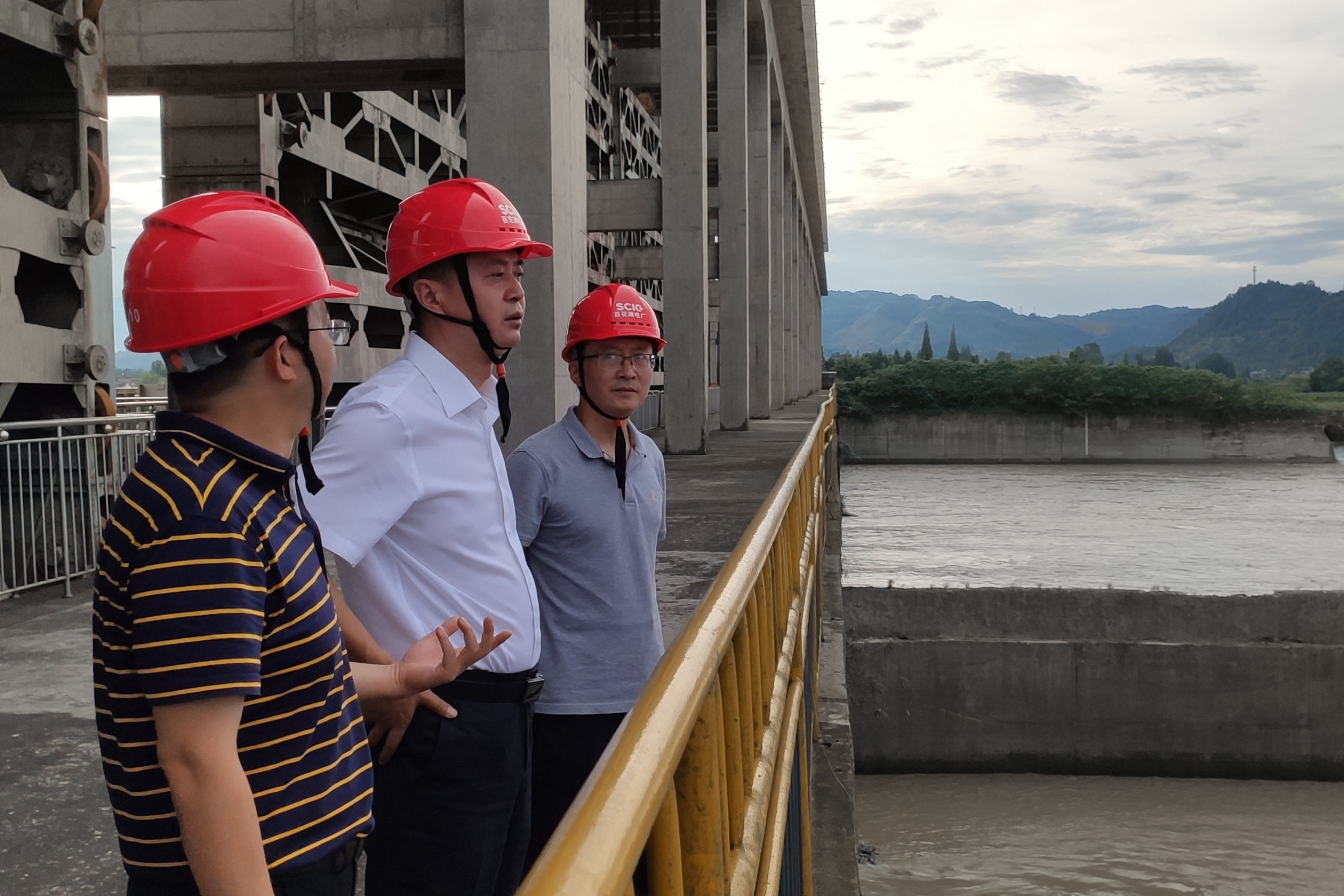 正在百花滩指挥抢险的川投电力副总经理王伟、陈云明和百花滩电站厂长姜健、高奉山电站厂长姚磊等陪同调研。